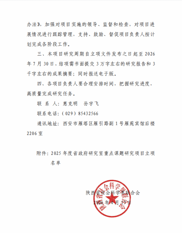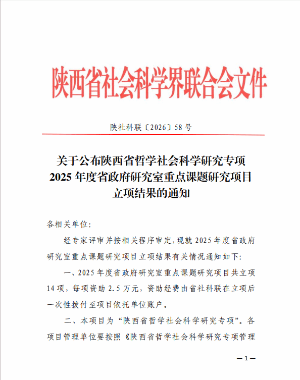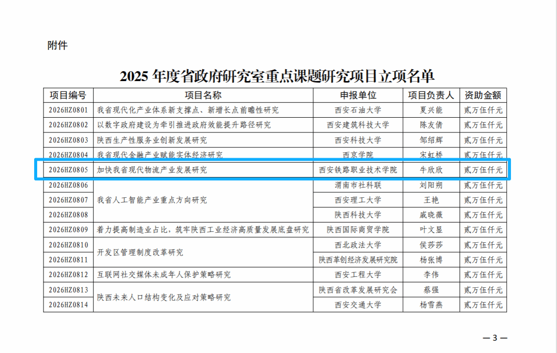 根据《关于公布陕西省哲学社会科学研究专项2025年度省政府研究室重点课题研究项目立项结果的通知》文件,学院土木工程学院牛欣欣的《加快我省现代物流产业发展研究》课题成功立项。