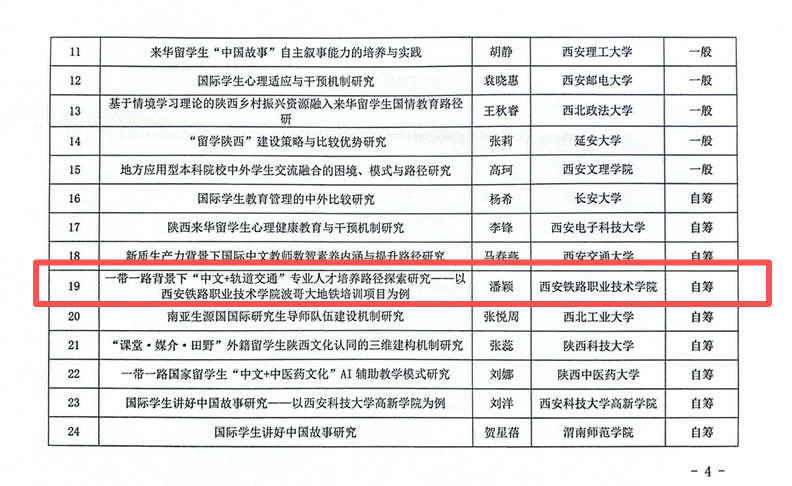 根据陕西省高等教育学会外国留学生教育管理分会《关于公布2025年陕西省来华留学生教育管理相关研究项目、精品课程和实践基地遴选结果的通知》(陕高留管【2025】7 号)文件,经过评审遴选,确定了36项来自留学生教育管理相关研究项目。我校报送案例的案例有1个案例入选。